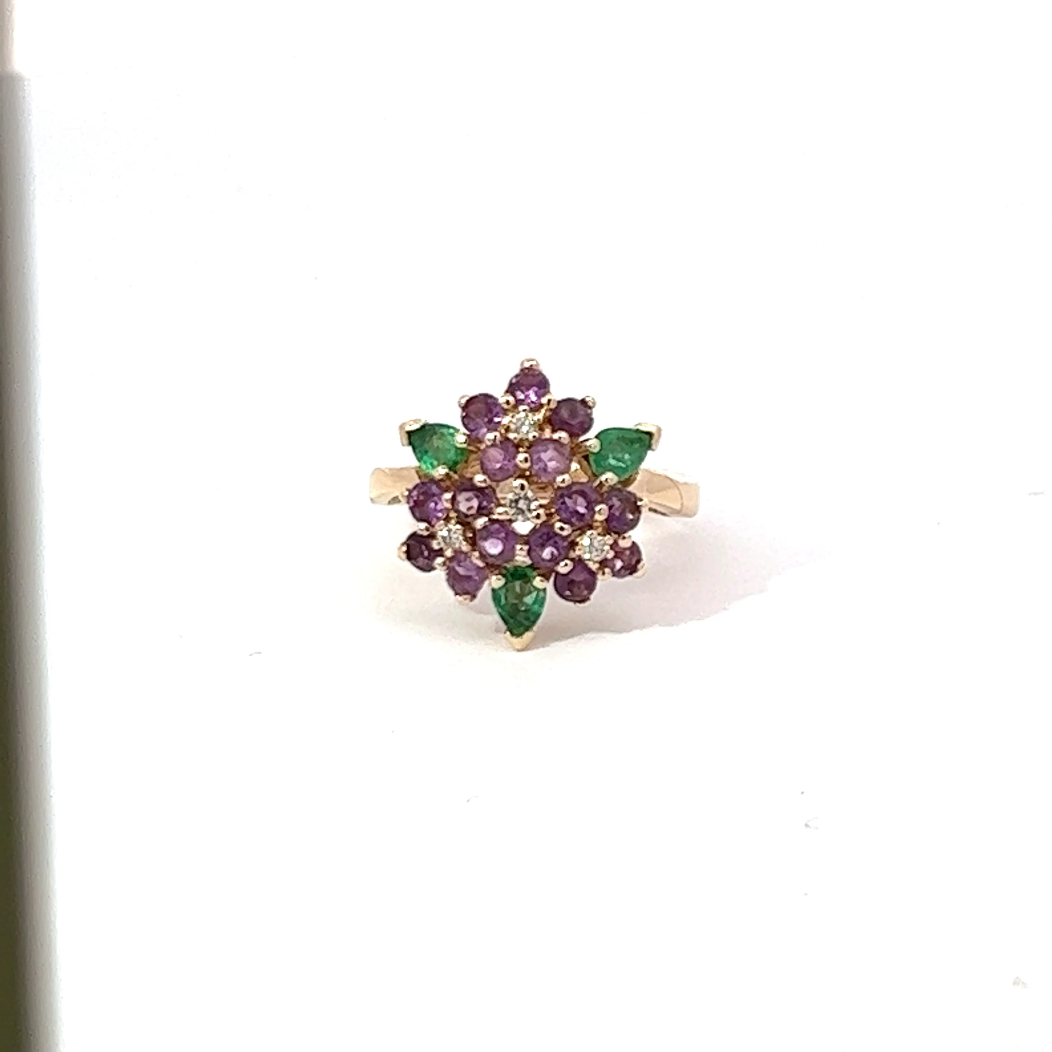 14K yellow gold, Diamond, Emerald, and Amethyst ring