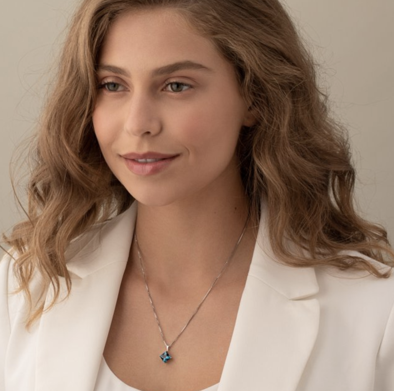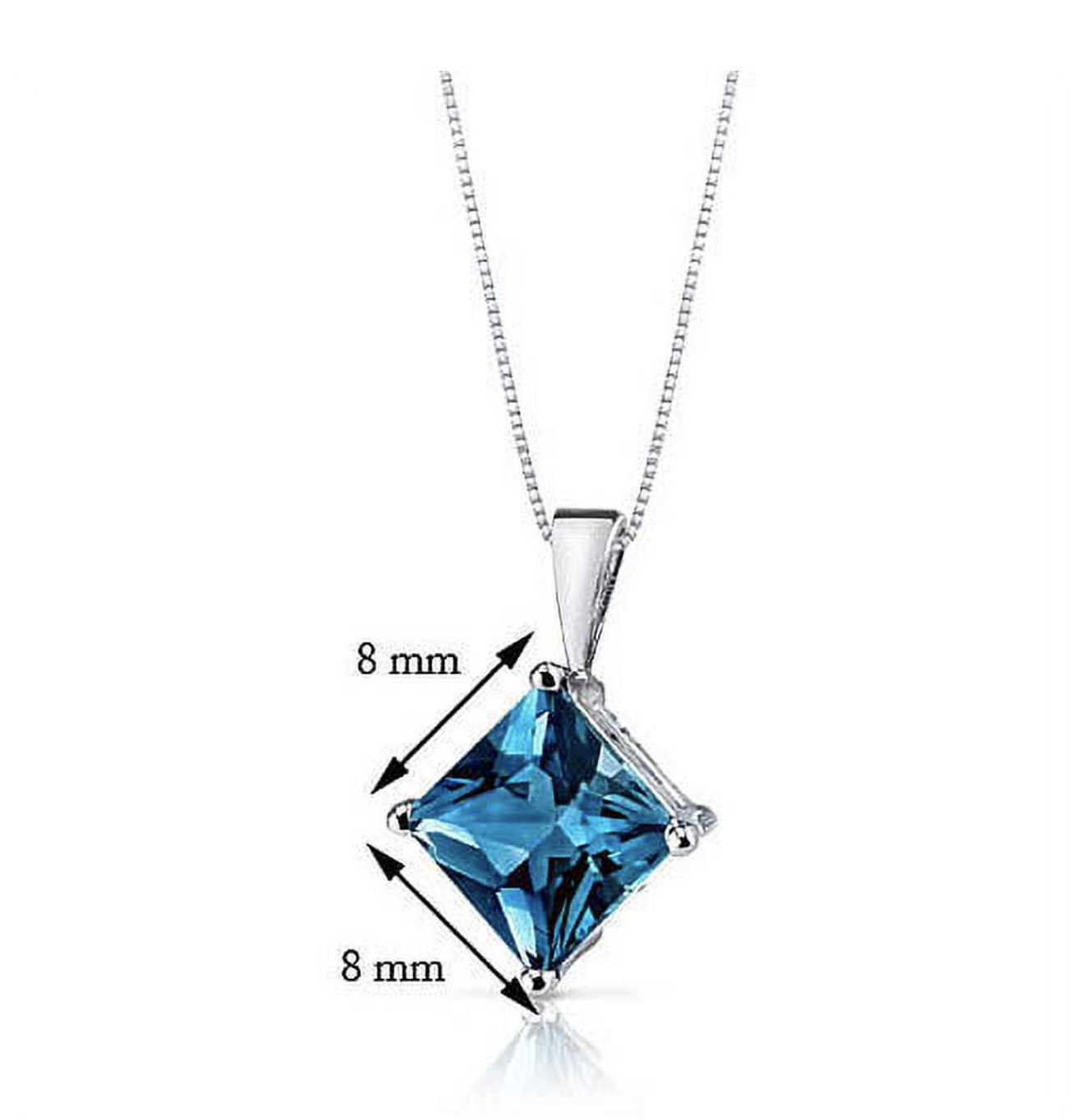 2.50 ct Princess Cut London Blue Topaz Pendant Necklace in 14K White Gold, 18"